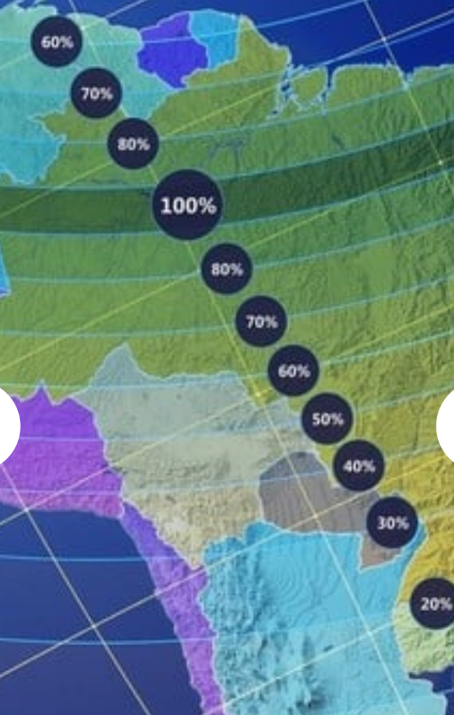 Eclipses de este tipo se dan cada 2 a veces 1 año. Lo particular de este año es la franja que abarcará podrá 30% verse en casi todo América norte y sur El próximo será el 2 de Octubre de 2024 y solo será visible en Chile y Argentina